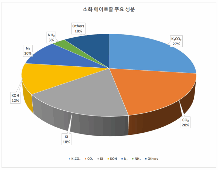 고체 에어로졸 소화 원리 고체에어로졸 작동시 생성되는 K 라디칼이 화염체인(산화 연쇄반응 고리)를 끊어서 잔존물 없이 화재를 효과적으로 진압 FIPRON 코드의 진화 FIPRON 코드는 2014년 질산칼륨을 산화제로하는 고체에어로졸 코드를 최초로 개발하였으며, 2022년 현재의 가스에어로졸 타입은 부식을 일으키는 질산칼륨 대신 새로운 산화제를 배합한 최고 성능의 고체에어로졸 약제를 적용하여 FIPRON 코드 완성 FIPRON 코드의 소화 성분 구성 고체에어로졸 작동시 생성되는 K 라디칼을 생성시키는 탄산칼륨을 주성분으로 하여 다양한 가스 소화약제 발생 형식승인 및 인증서